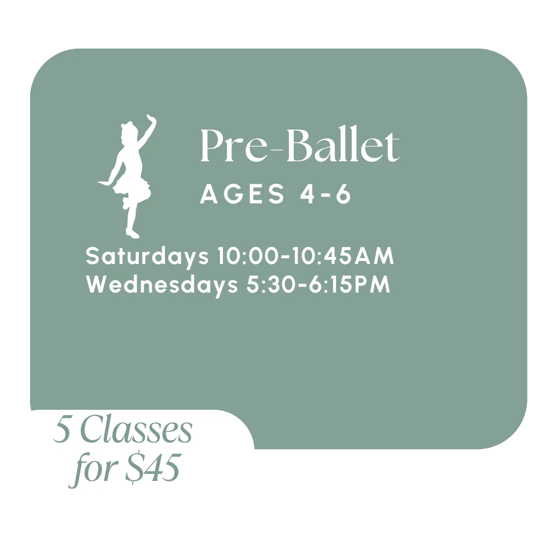 Designed for young dancers ready to take their first independent ballet steps, this class introduces foundational ballet techniques, musicality, and creative movement. Students will develop strength, balance, and flexibility while learning basic positions, terminology, and simple choreography in an engaging and encouraging setting. Pre-Ballet builds coordination, discipline, and a sense of accomplishment, preparing students for future ballet training.