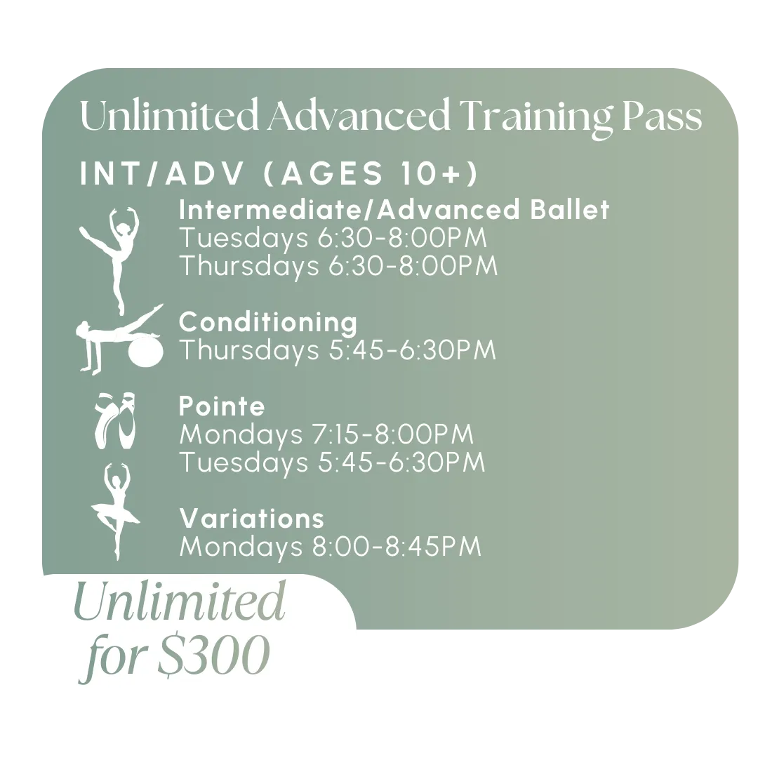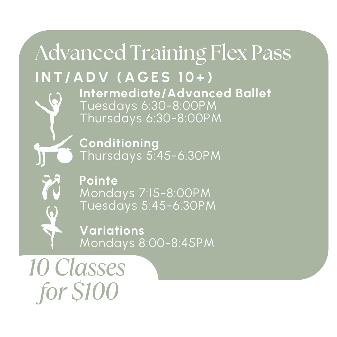 Step into the spotlight and bring iconic ballet roles to life in our Variations Class! Each week, dancers will learn a new classical variation following the theme of the week, exploring the artistry, technique, and storytelling behind some of ballet’s most beloved solos. This class is designed to enhance performance quality, refine precision, and build confidence on stage. Whether you’re preparing for auditions, competitions, or simply looking to expand your repertoire, Variation Class is the perfect opportunity to challenge yourself and grow as a dancer. Dancers wishing to take this class in pointe shoes or demi-pointe shoes must receive prior approval from our faculty.