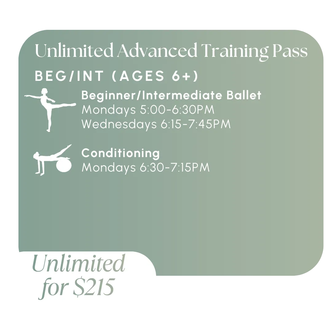 Conditioning helps dancers build the physical foundation necessary for classical ballet. This class offers a more advanced approach and is ideal for dancers looking to enhance performance quality, prevent injury, and support more demanding choreography and technical work. Using proven conditioning methods including Progressing Ballet Technique (PBT), Pilates-based exercises, resistance training, and targeted strengthening drills, dancers will begin developing muscle memory and body awareness that directly supports their ballet training.