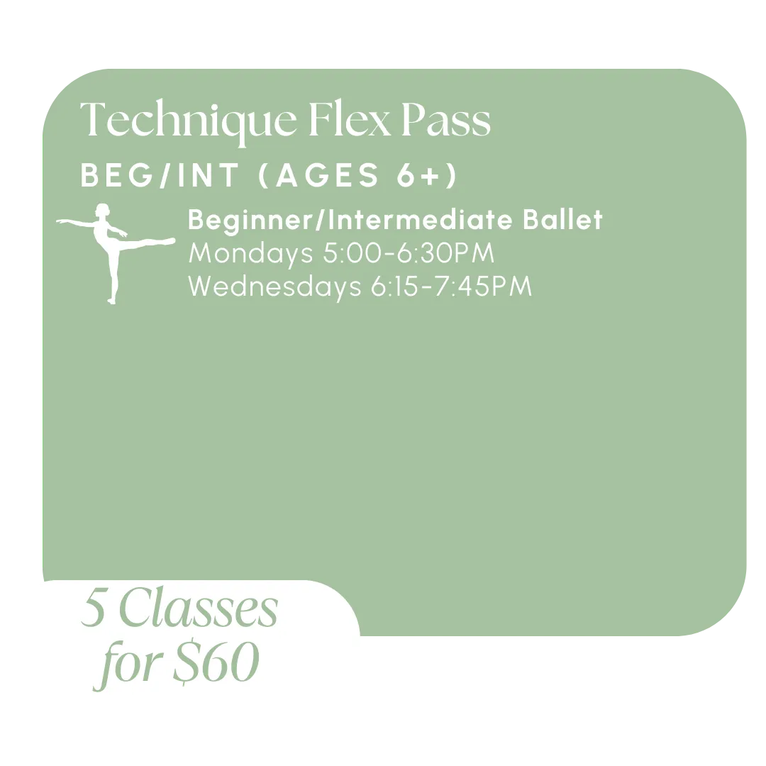 Designed for dancers with prior ballet experience, this class refines technique, strength, and artistry through more complex barre and center work. Emphasis is placed on proper alignment, fluidity of movement, and musical interpretation. Students will develop greater control, precision, and expression, building the skills necessary for advanced ballet training and performance.